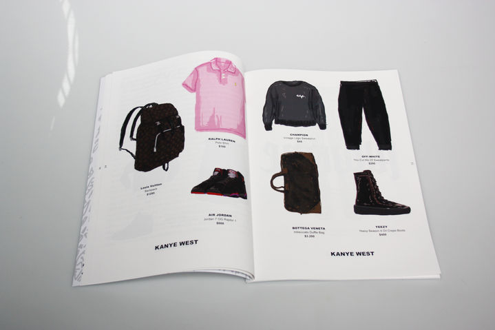 To create an authentic magazine, I conducted an in-depth structural analysis of existing publications to shape the layout and design. I selected ten rap stars who have had a significant impact on fashion, and instead of showcasing their personalities, I focused exclusively on their fashion choices. Each outfit was deconstructed into individual pieces, which I then digitally illustrated. The result was a catalog-style presentation of these fashion elements, featuring the prices of the pieces, creating a critical perspective on the represented societal values, paired with background information on the artists and their cultural impact.
